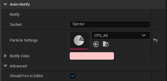 The FPS Animation Pack relies on a single Niagara System, which is responsible for the effect of the empty casing when firing: