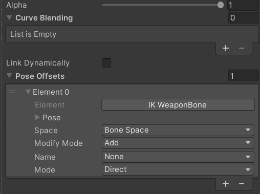 **Pose Offset** is a <mark style="color:green;">helpful</mark> layer, which is designed to offset the selected element. It is commonly used for adjusting IK objects for special cases, like crouching or crawling.