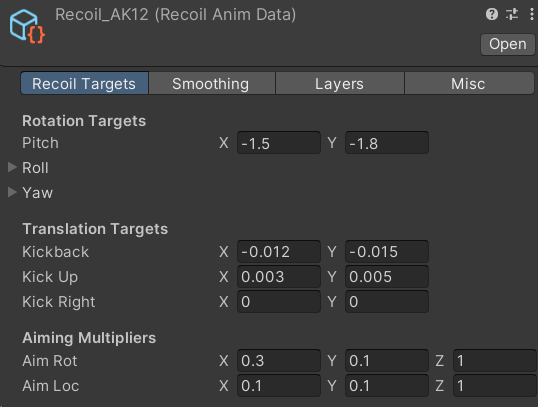 This asset contains animation curves and values for the recoil solver: